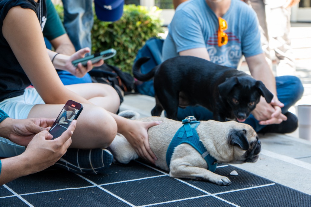 “I love pugs, and I love dogs, and it was a free event, so I decided to come check it out,” said Valentina Hernandez, a freshman majoring in physics. “You can make friends. You create a connection with the dogs, and you learn new tricks. So I think there’s a lot to gain. Plus, it’s a stress reliever … especially because I have a test today.”